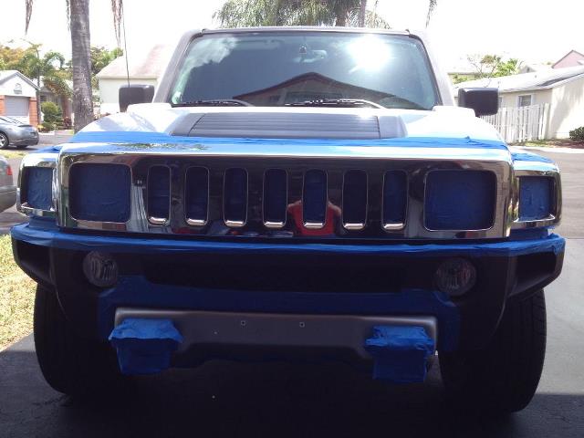 Thanks guys. I sprayed 5 coats and waited 15 minutes for each layer to dry. I left everything on and just applied blue masking tape on the areas where I didn't want the plasti dip to go on. if you get plasti dip on the paint, no big deal it will come off. For the running boards I put blue masking tape on plastic step pads and sprayed 6 coats on. Make sure not to attach the tape along side the area that you're plasti dipping or else the plasti dip will come off along with the tape. Also, after you plasti dip the running boards avoid stepping on the parts where you plasti dipped. Yes, I still have the plasti dip on the H3, it's holding up pretty good.