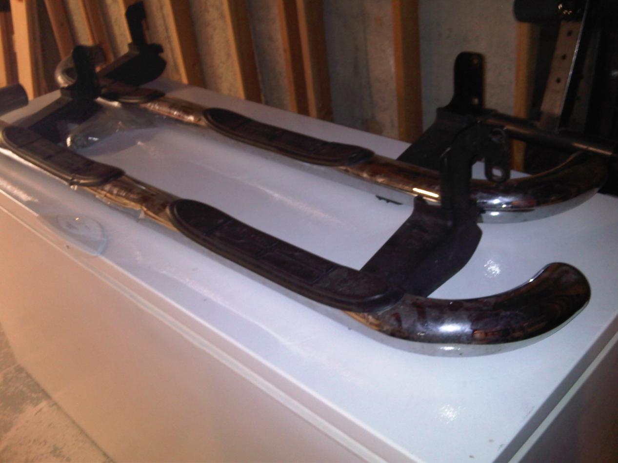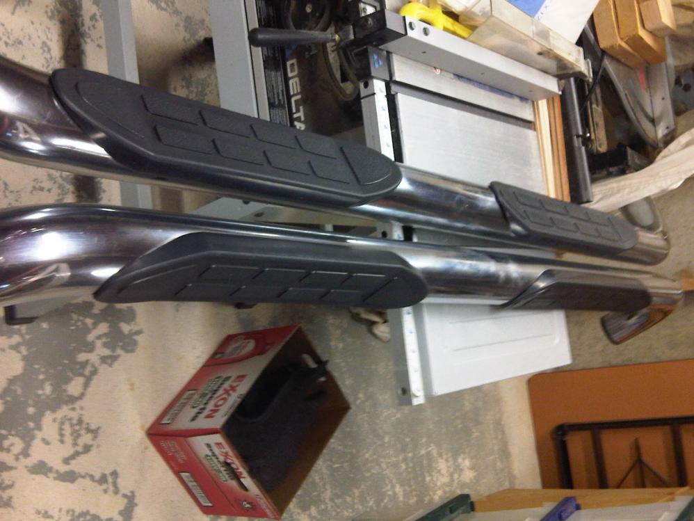 - 2 sets of chrome side bars/running bars/nerf bars. Bought one set on here and one from Craigslist. Intended on painting them black for a black out look, but again, didn't get around to it. One set of bars is an aftermarket type, the other is stock GM. On the stock GM set, one bar has a dent. Asking $125.