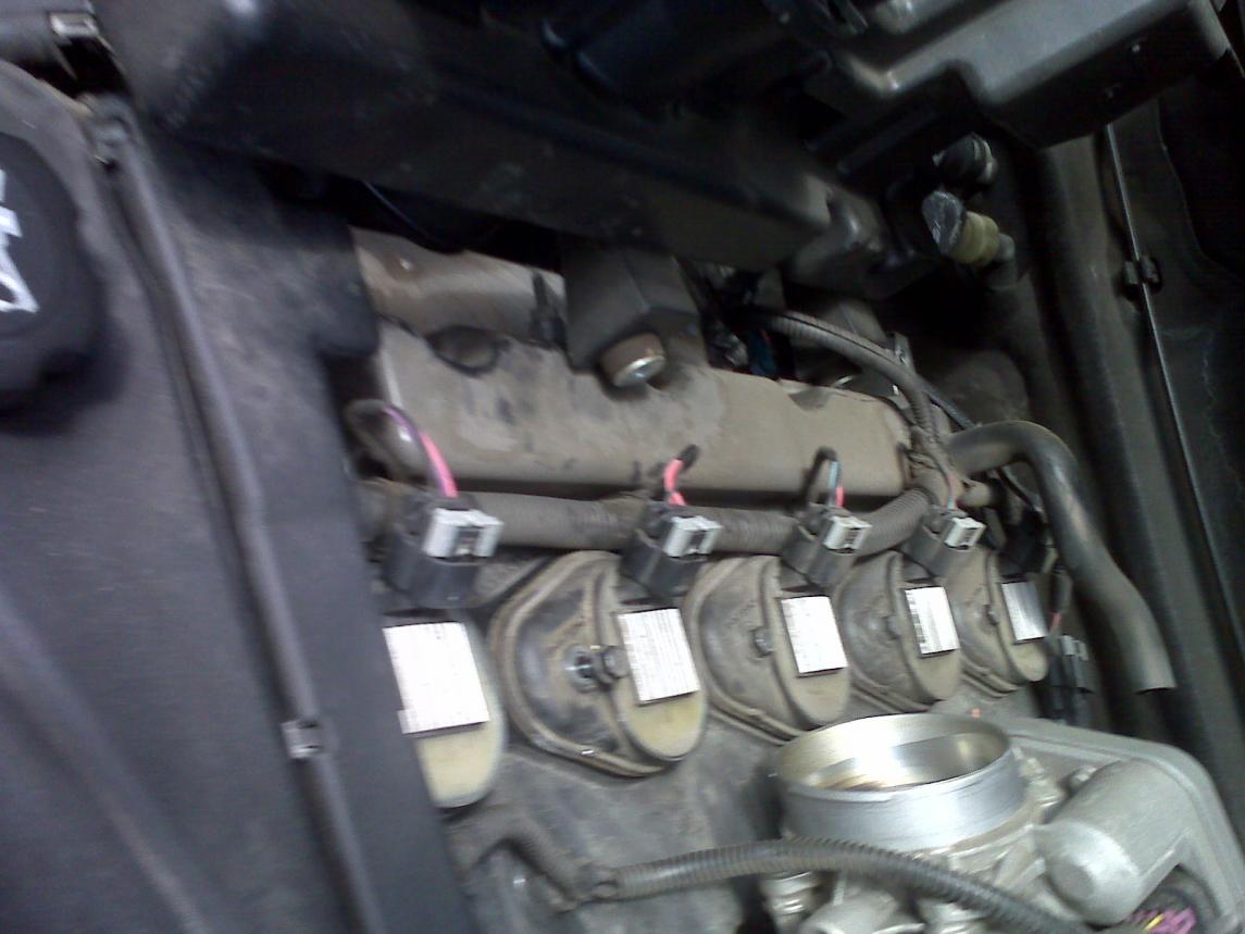 Now the 5 ignition modules are visible. They are each held in place with a 10 mm hex head (I guess someone at GM was thinking, because the tools required are minimal). Once the bolts are loose the module slides straight up and the boot comes off of the spark plug. Things at this point look familiar. Gap, anti-seize and replace the plugs and replace the parts in reverse.