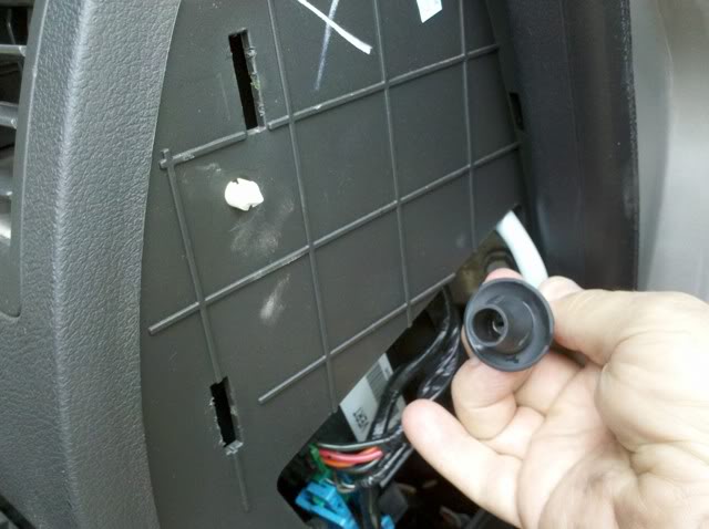 Now you have both ends of the drain tubes: Upside is in front of the sunroof channels both corners, and lower sides are shown above... Clean the tubes and push the tube grommets firmly back into the firewall...