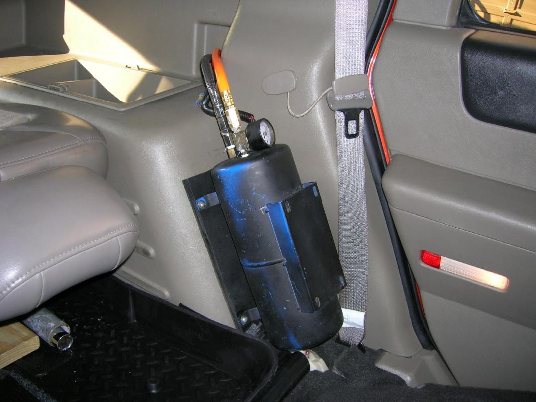 The Tank is mounted where the OEM JACK is fastened to.