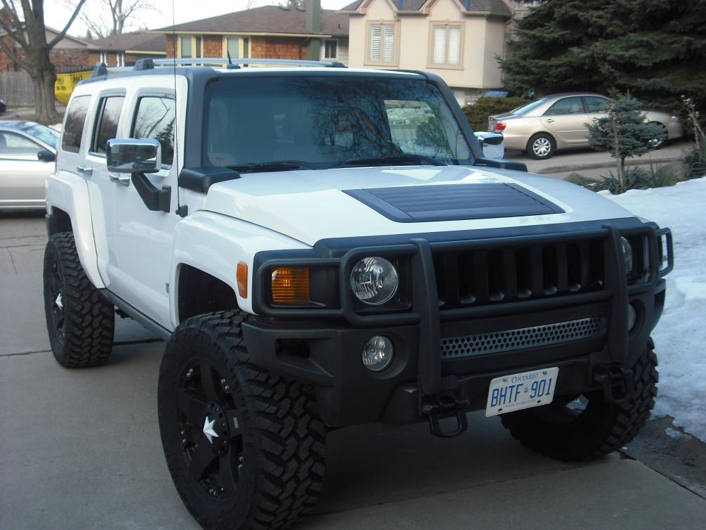 Here is a White H3 ( on the roads/byways and having fun) with black 20" rockstars..and 35's..hubs -color matched