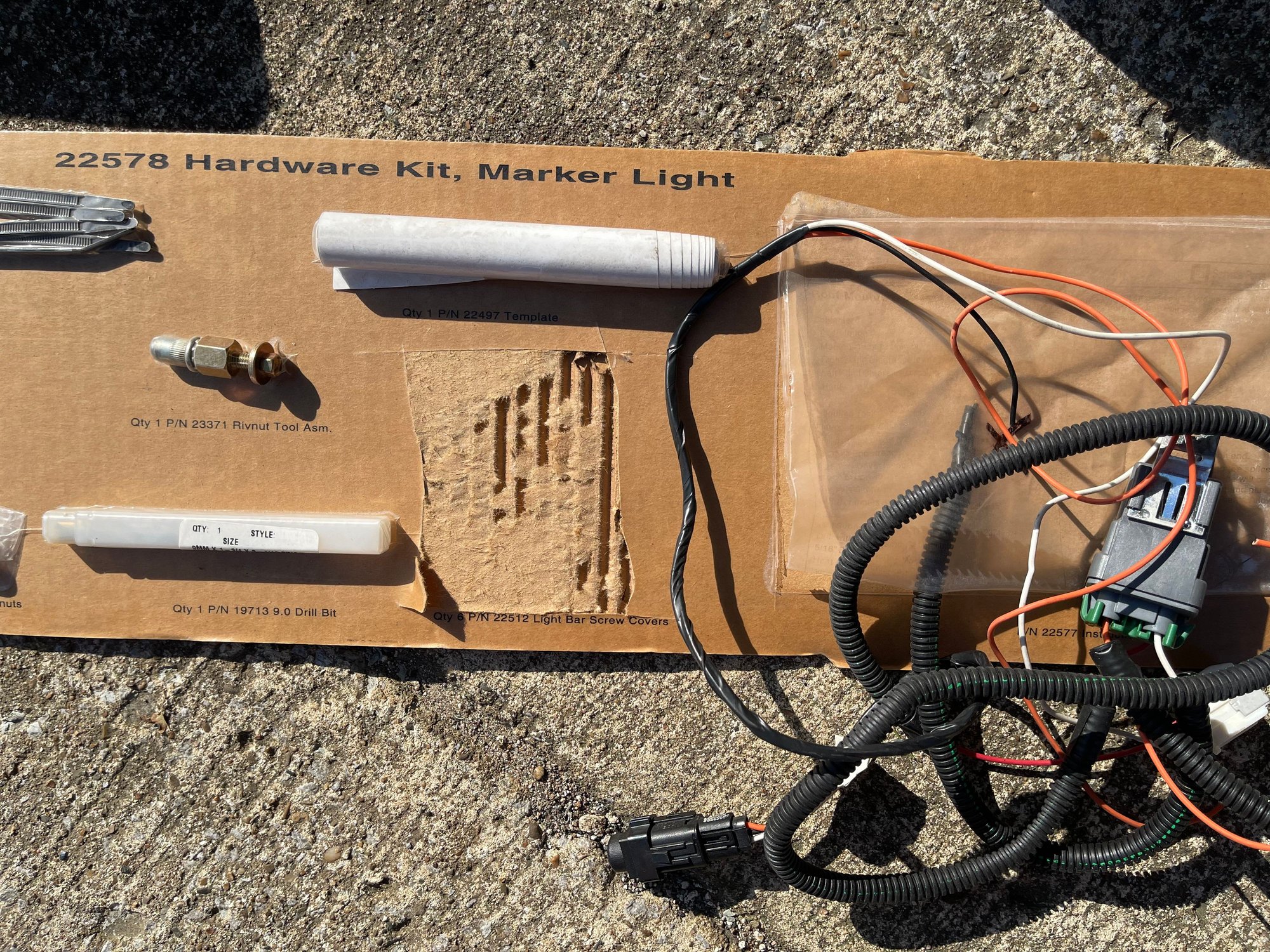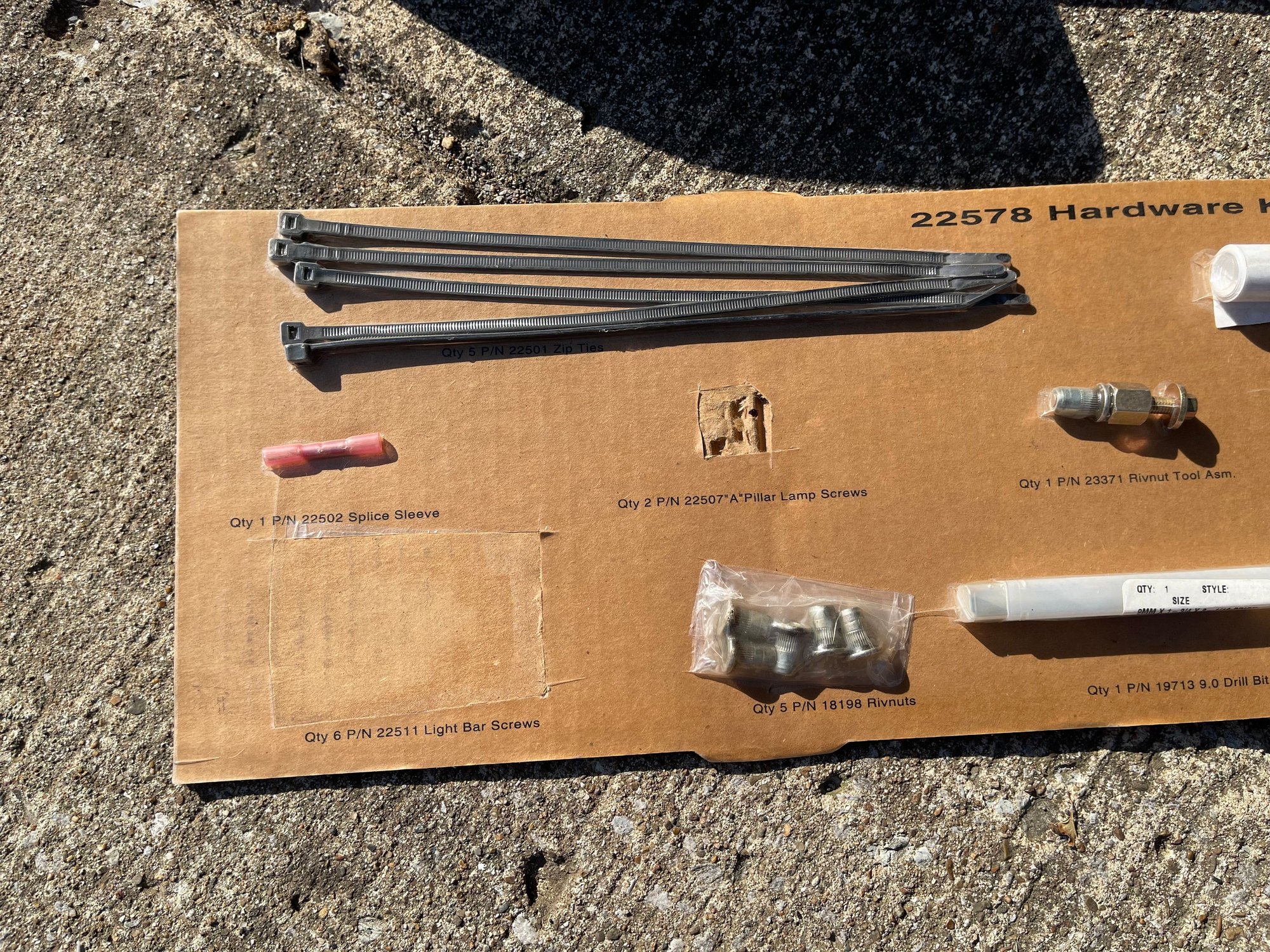 it is a used kits so it does not have the mounting bolts and it does NOT have the small black plastic covers for the lights (those I think are a myth).