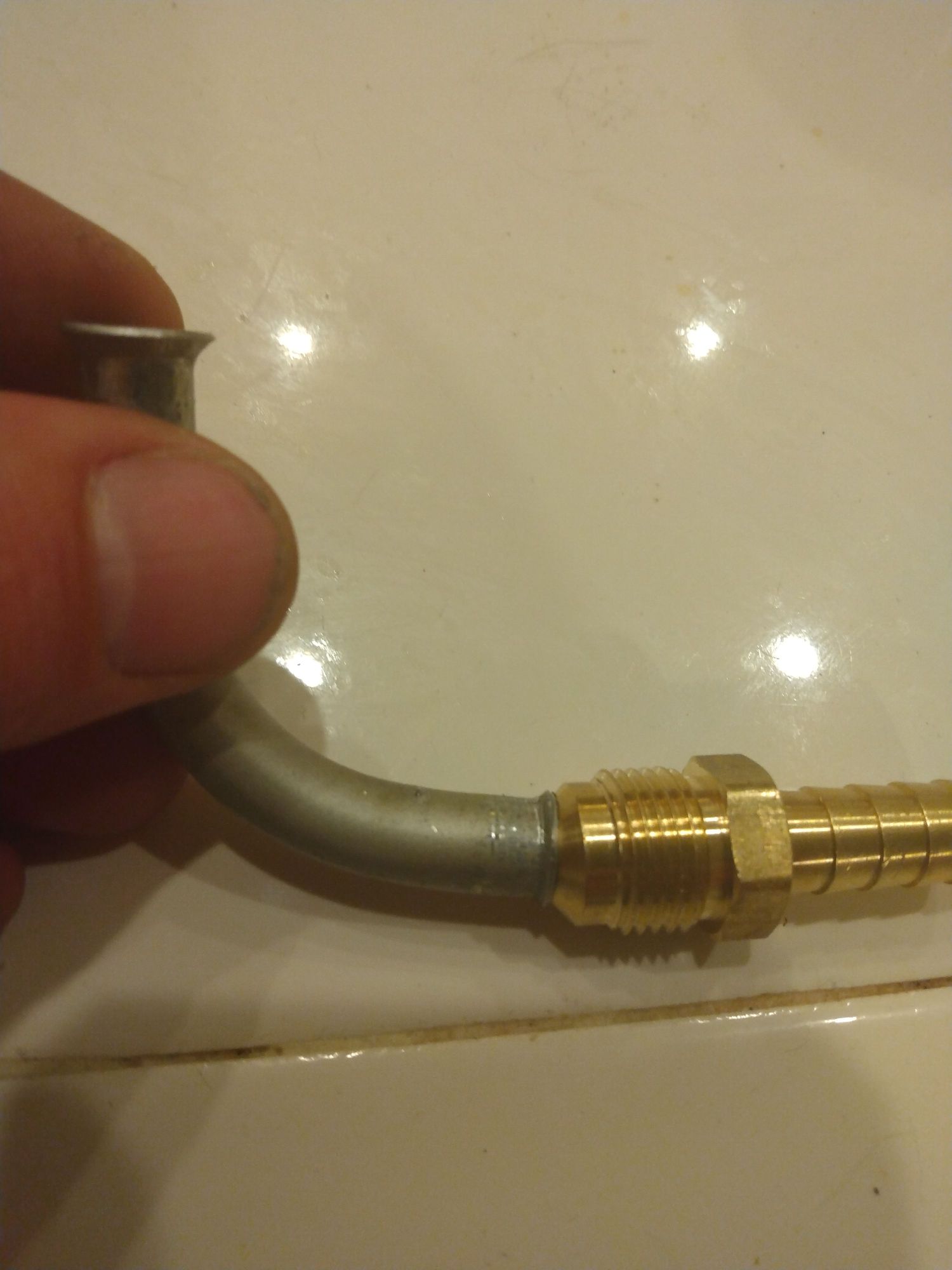 Practice tubing butting up against the flared male fitting